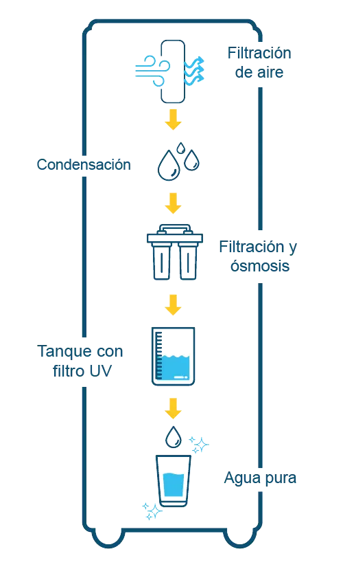 Nuestros generadores capturan el agua presente en el aire para producir agua potable excepcionalmente pura e ilimitada.