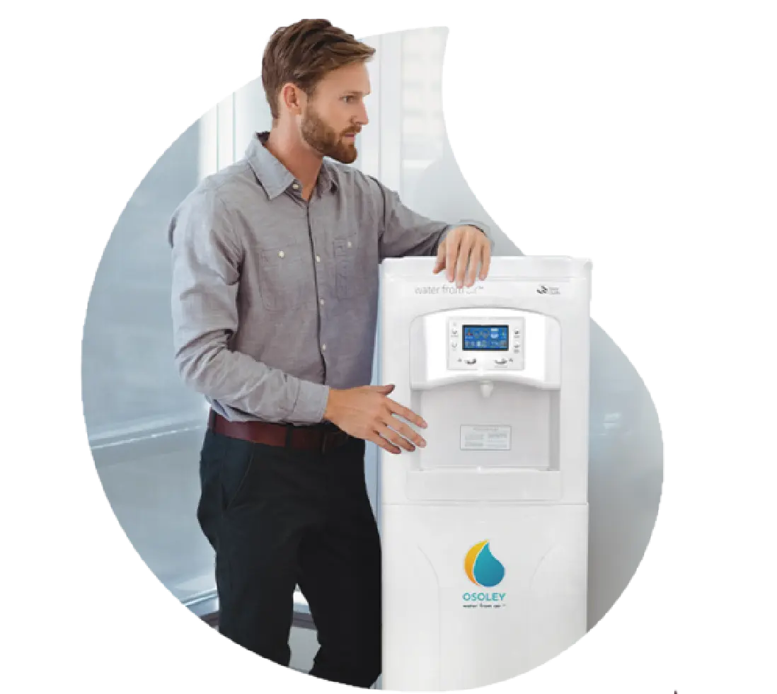 Los generadores de Osoley no requieren plomería: solo necesitan un enchufe eléctrico para producir agua pura.